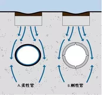 塑料管屬于柔性管,在受外壓負荷時,柔性管和剛性管的承受負載的機理是全部不同的。柔性管在受壓破壞之前,可以有較大的變形,而剛性管在受外壓破壞之前不可能有較大變形。當剛性管受外壓時,負載全部經(jīng)過管材壁傳遞到底部的管床上,在管材壁內產(chǎn)生彎矩,隨著管材直徑加大,管壁的彎矩和應力急劇加大,所以大直徑的混凝土排水管常常需加鋼筋,而柔性管在受壓破壞前先變形----橫向外擴,管材周圍的回填土壤可以起到阻止柔性管變形和外擴的作用,外壓負載就被傳遞和分攤到周圍的回填土中去了。所以,在同樣外壓負載下柔性管管壁內的應力較小,它和周圍的回填土共同承受負載,管土共同作用。因此,塑料埋地排水管不需和剛性混凝土管一樣的強度和剛度,在合理的剛度下,是全部可以達到使用要求的,這一點已被歐洲發(fā)達的應用實踐所證明。